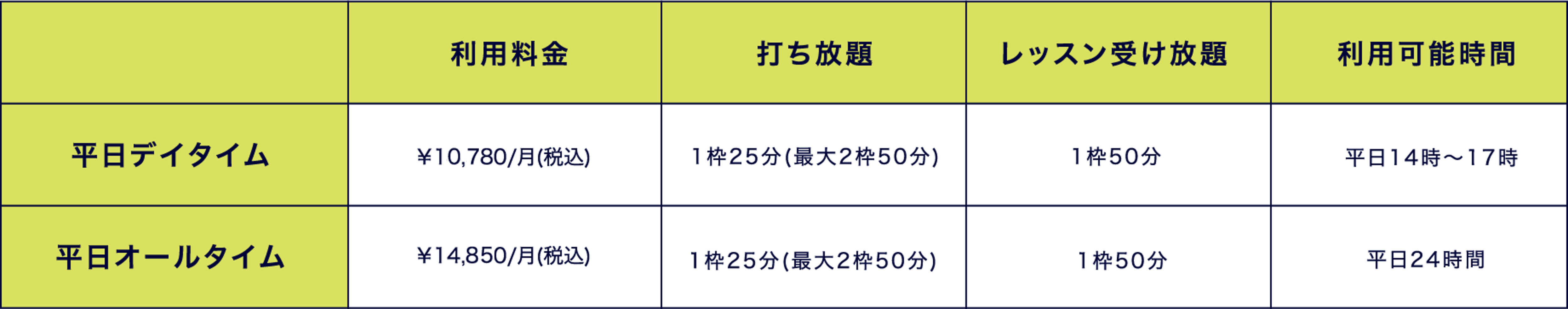 ※休会中及び退会後はレッスンの振替及び打ち放題の利用は不可となります