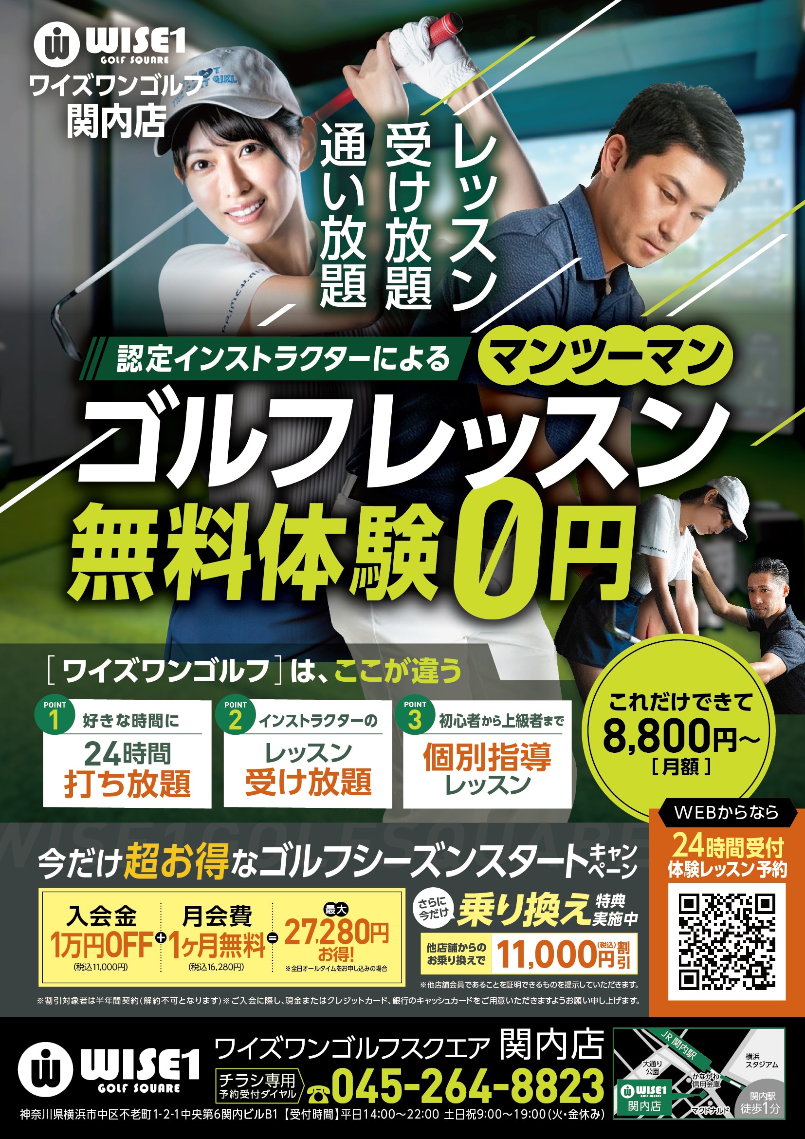 ・打席の予約に関して、フリー打席は30分ごとの予約ご利用が可能です。レッスンは1時間ごとに実施しているため、正時からのスタートのみとなります。